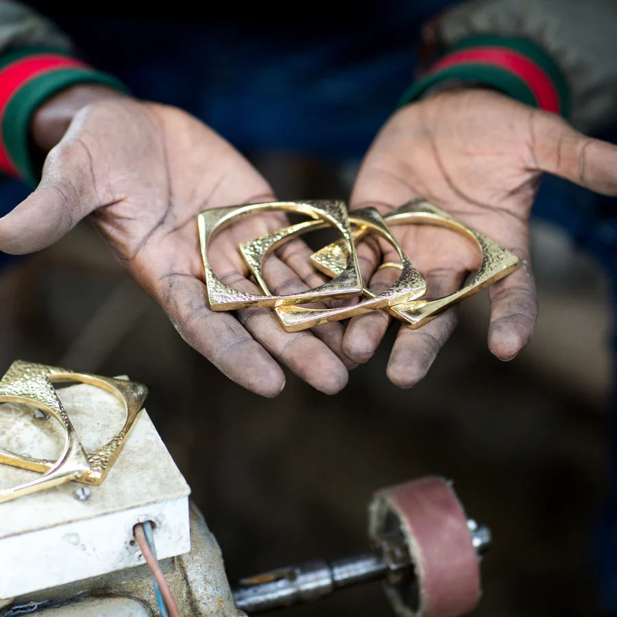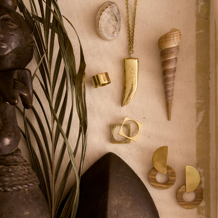 Each piece is handcrafted in Kenya using warm brass and shaped with wearability in mind.